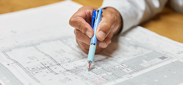 お客様のご要望を踏まえて、仮設計を組み、お見積もりを作成します。仮図面の作成も行います。