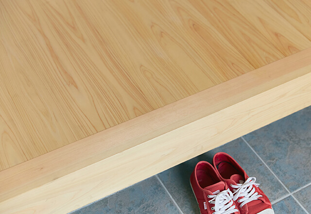 また、玄関から居間につづく廊下に使用していただいた木材はとても気持ちがよく、つい素足で歩きたくなります。